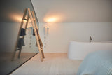 בעל מראה דומיננטי של עץ מלא חצי מעובד שמהווה תוספת עיצובית שלא ניתן להתעלם ממנה! הסולם מיוצר מעץ טיק שידוע בעמידותו למים ומתאים במיוחד לשימוש בחדרים רטובים.