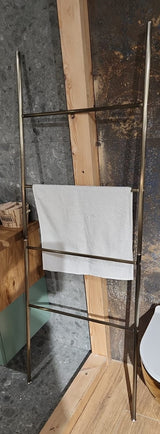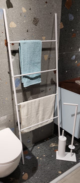 סולם מתכת עם 4 שלבים להשענה על הקיר לצורך פריסת מגבות רטובות לייבוש.