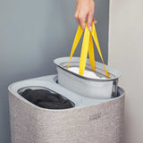 סל כביסה מעוצב, פרקטי ועמיד במיוחד הכולל הפרדה ל-2 תאים פנימיים בנפח של 30 ליטר כל אחד, לצורך חלוקה לכביסה עדינה או צבעים בהירים וכהים. לסלים הפנימיים יש ידיות נשיאה בחלק העליון להקלה על נשיאתן