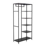 מתלה לבגדים עם מדפים מברזל בצבע שחור