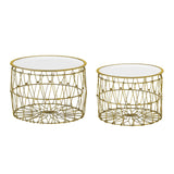 סט 2 שולחנות צד Wire ק' 42 / 47 ס"מ - אמייל לבן / פליז
