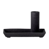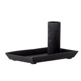 פמוט מתכת לנר בצבע שחור עם מגש קטן וחמוד