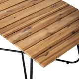השולחן עשוי מסגרת מתכתית שחורה ופלטת עץ שיטה טבעי העמיד לתנאי חוץ