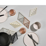 זוג תחתיות לסיר בעיצוב גאומטרי מקורי בהשראת עלה. התחתיות כל כך יפה שלפעמים מתחשק לשים אותה על השולחן סתם ליופי!