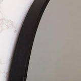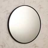 מראה עגולה איכותית עם מסגרת מתכתית בגוון שחור מוברש לשמירה על מראה עיצובי נקי ומודרני.